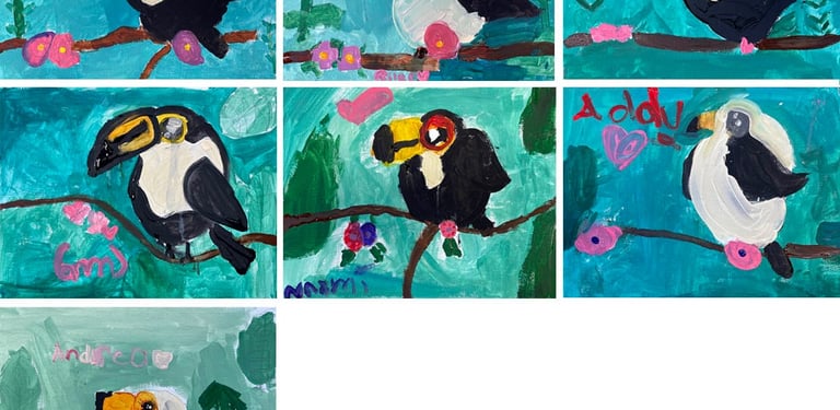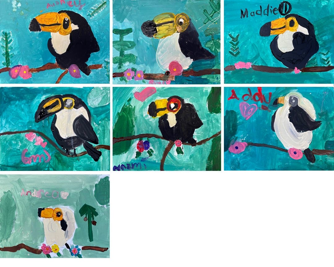 Congratulations on completing your toucan masterpiece! I hope you had fun. Remember, the world is your canvas, so keep creating and let your imagination soar!